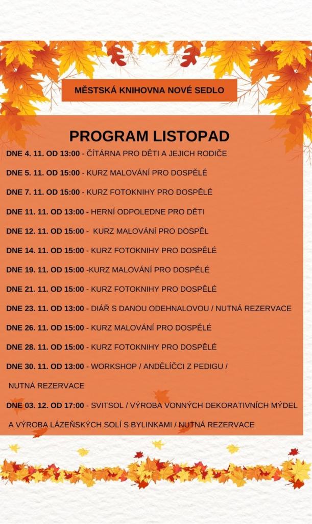 Zveme vás na kreativní listopad plný workshopů a zábavy! V naší Městské knihovně Nové Sedlo se v průběhu listopadu uskuteční hned několik zajímavých akcí, které si nenechte ujít